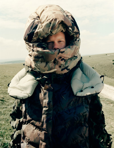 In a recent interview [in 032c] with Charlie Fox, you were asked about the weather conditions in which this garment can be worn, and you said: ‘100% industrial gray cloud, also known as “weather on antidepressants”. Cloud drone: similar to above but with the same cumulonimbus clouds emitting a ferocious electrical drone, best mimicked by the album Special Low Frequency Version by Earth at maximum volume. That phase of winter when the sun stops giving a fuck due to pollution/radiation and is as weak as the crack of light under a door in a dark corridor.’ This made me curious about the role of weather in your work, and also what kind of music you are listening to.
